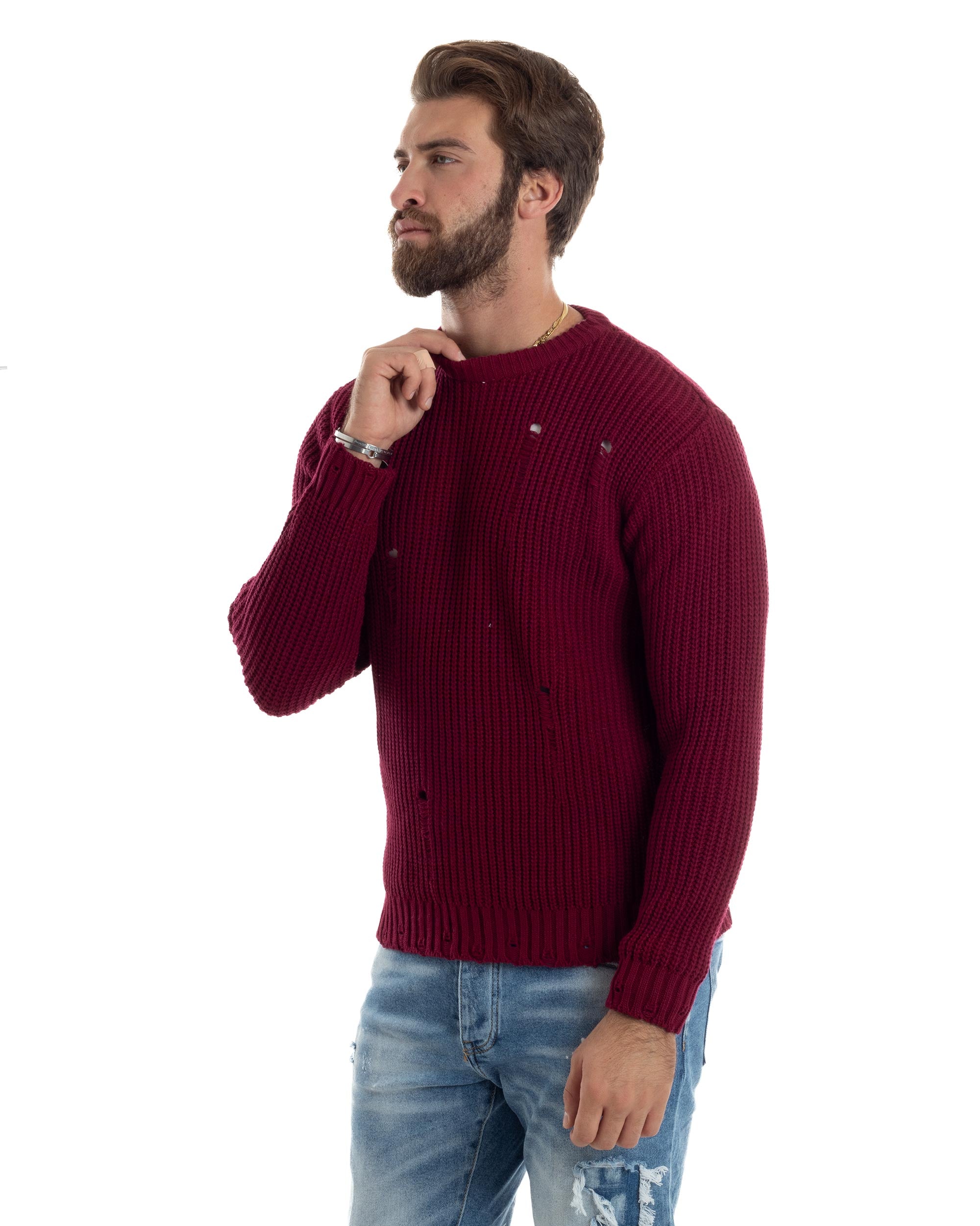 Maglione Uomo Girocollo Con Rotture Lana Maglia Inglese Maglioncino Ca