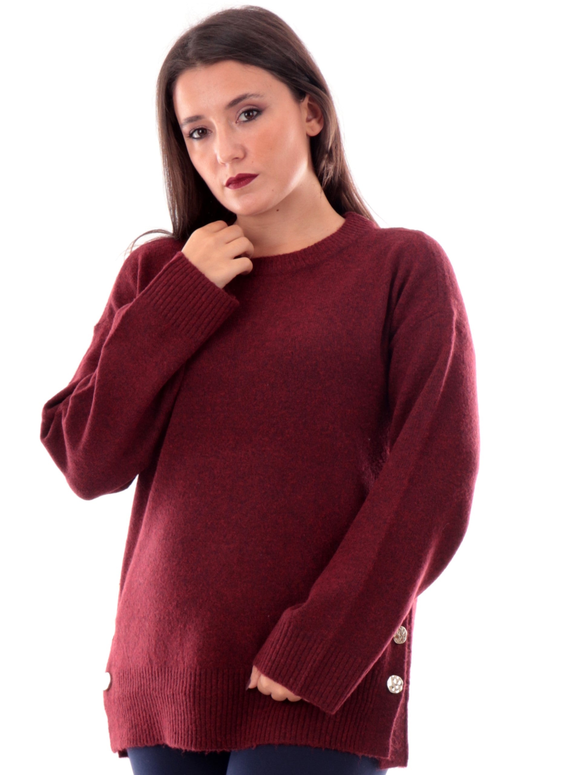 Maglione Only bordeaux da donna con bottoni oro 15350612